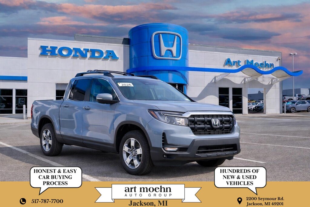 This 2026 Honda Ridgeline RTL, comes in Sonic Gray Pearl exterior with Black interior. Call us at 517-247-2048 and reference stock Number 73580
