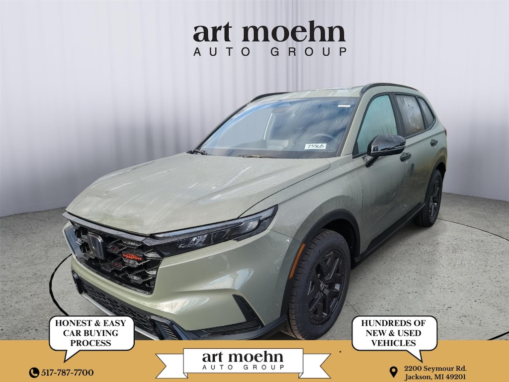 This 2026 Honda CR-V Hybrid TrailSport, comes in Ash Green Metallic exterior with Black interior. Call us at 517-247-2048 and reference stock Number 73368