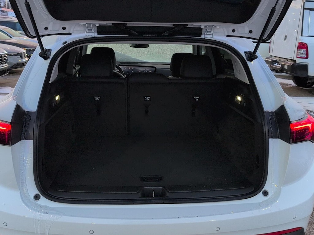- The vehicle is equipped with a camera that displays an image of the area behind the vehicle on an interior display.