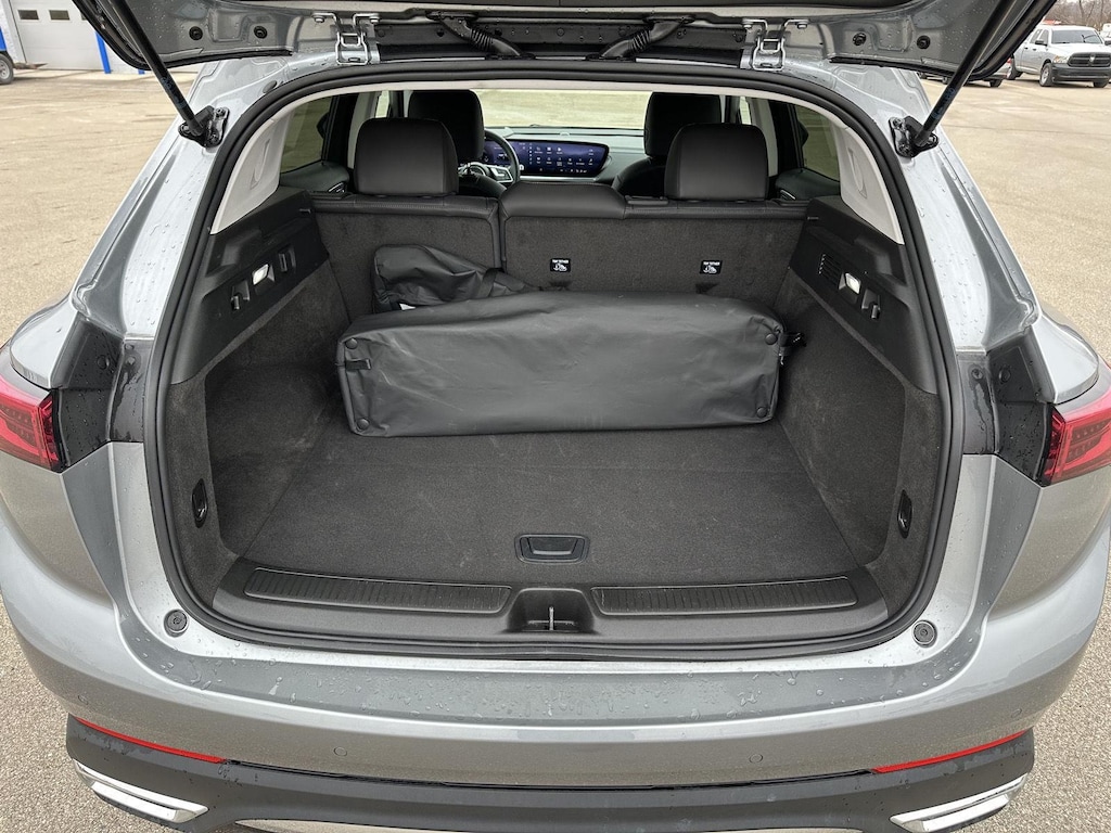 - The vehicle is equipped with a camera that displays an image of the area behind the vehicle on an interior display.