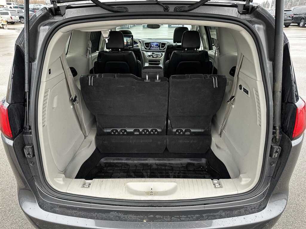 - Access to the cargo area is gained via a large, power-operated rear door that opens upwards. This door may also contain the rear windshield of the vehicle.